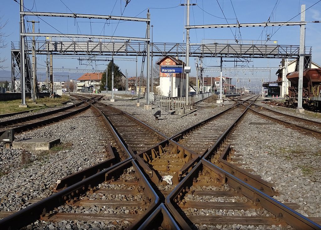 Kerzers lag in der Römerzeit an einer wichtigen Transitroute durch das Mittelland. Die Wahrzeichen des Orts sind seine Kanäle, das Grosse Moos, die Eisenbahn und das Label «Bio Suisse». Das Stellwerk von Kerzers wurde 1901 errichtet und 1948 elektrifiziert. Jüngst wurde es restauriert und dabei mit Simulationsmöglichkeiten ausgestattet. Die Passerelle von Kerzers ist ein genietetes Fachwerk. Die Restaurierung des Übergangs während des laufenden Bahnbetriebs stellte eine interdisziplinäre Herausforderung dar.