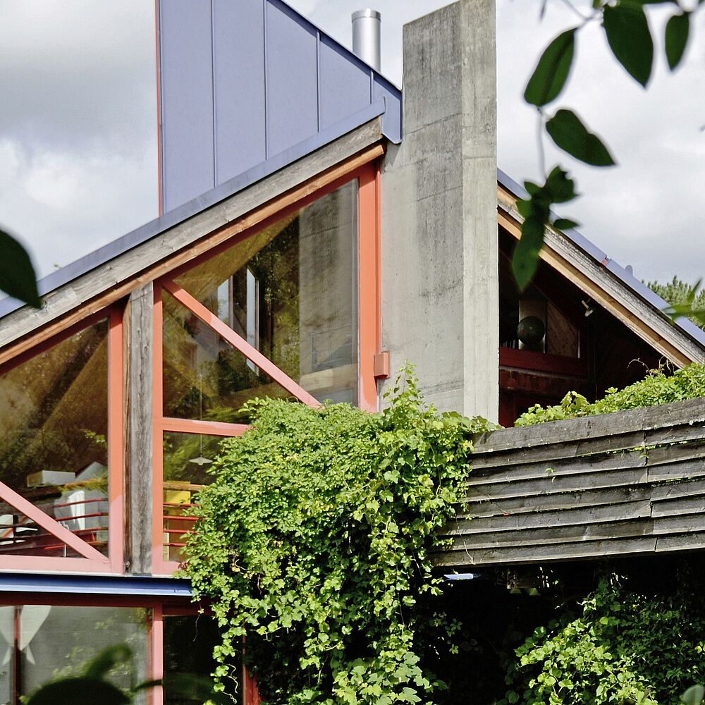 Das eigene Wohnhaus von Silvia Gmür ist einer der ersten Bauten in der langjährigen Karriere der 2022 verstorbenen Architektin. Das von der Strasse zurückversetzte, 1979 fertiggestellte Wohnhaus ist auf den ersten Blick ein fantasievolles Raumgebilde aus zackenförmigen Baukörpern und verschiedenen M...