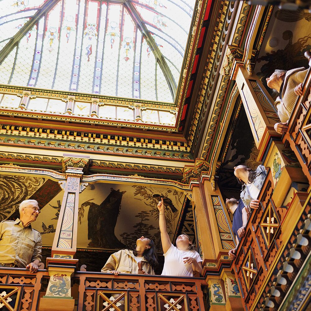 Tanzende Frösche und fliegende Drachen: Die asiatische Galerie mit Kuppel ist für viele das Bijou in der Villa Patumbah. Der Bauherr Carl Grob – reich geworden mit Tabakplantagen im kolonialen Sumatra – liess 1885 ein architektonisches Andenken an den Aufenthalt in Asien in sein Traumhaus integriere...