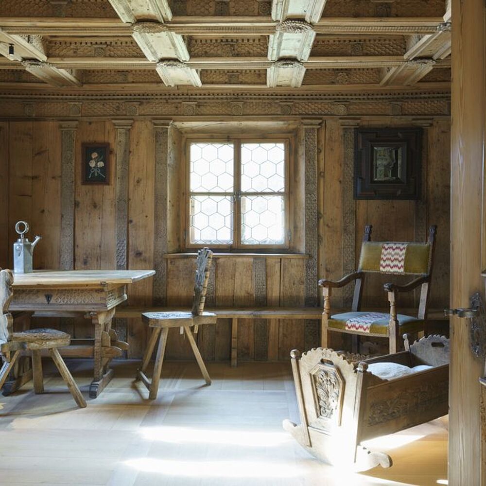 Durch seine Tätigkeit als Bierbrauer war Museumsgründer Riet Campell mit dem ganzen Engadin und den umliegenden Tälern vernetzt. Er sammelte holzgetäfelte Stuben aus dieser Region und liess sie in sein Museum einbauen. In der konkreten Zusammensetzung dieser kulturhistorischen und baugeschichtlichen...