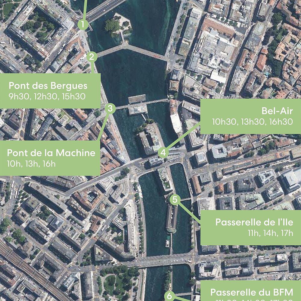 La succession des ponts enjambant le Rhône est remarquable. Sans eux, les deux rives ne se rencontreraient jamais, leur histoire étant ainsi intimement liée au développement urbanistique, économique, social et territorial de Genève.