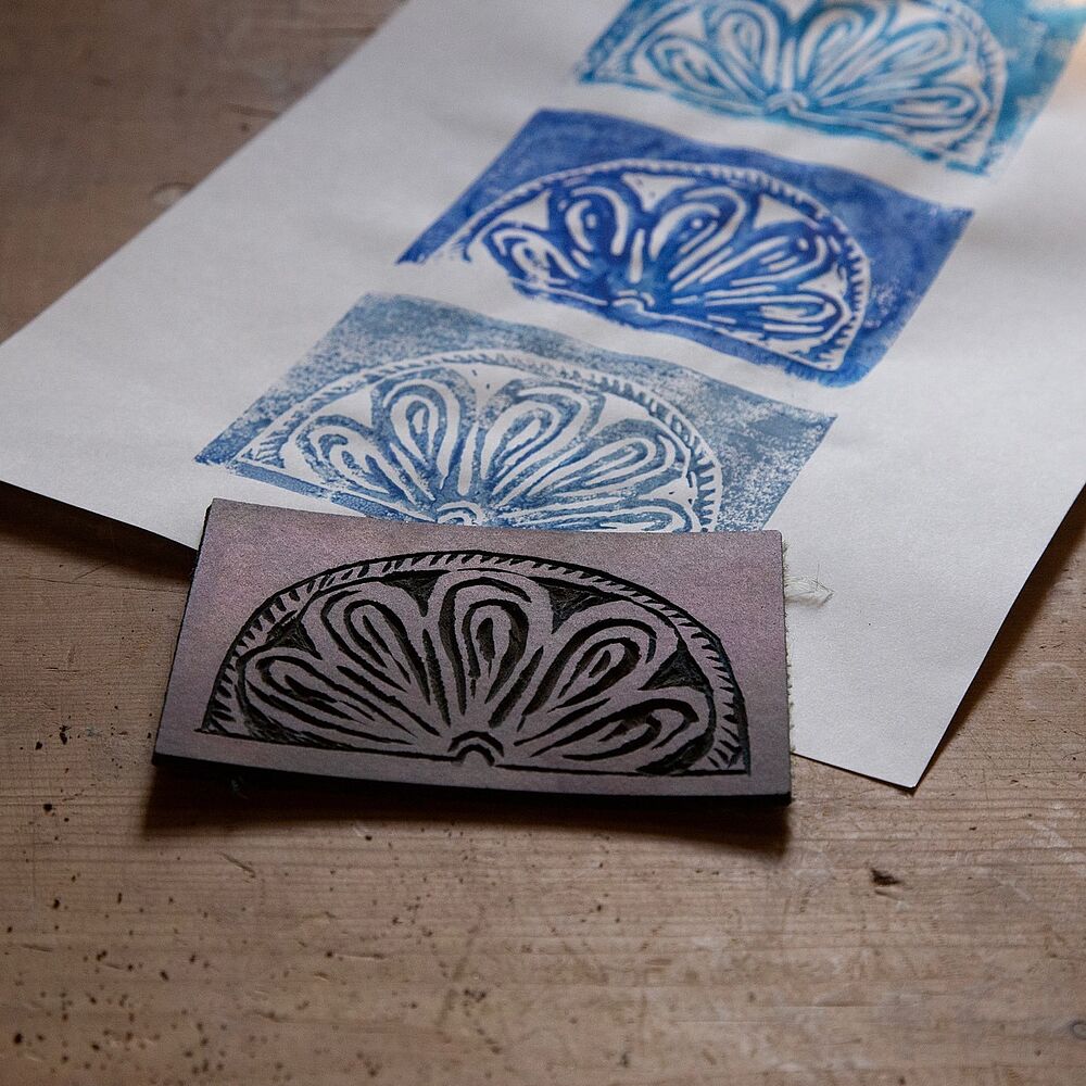 Linoldruck mit Motiven aus der Sgraffitokunst, Museum und Archäologischem Archiv