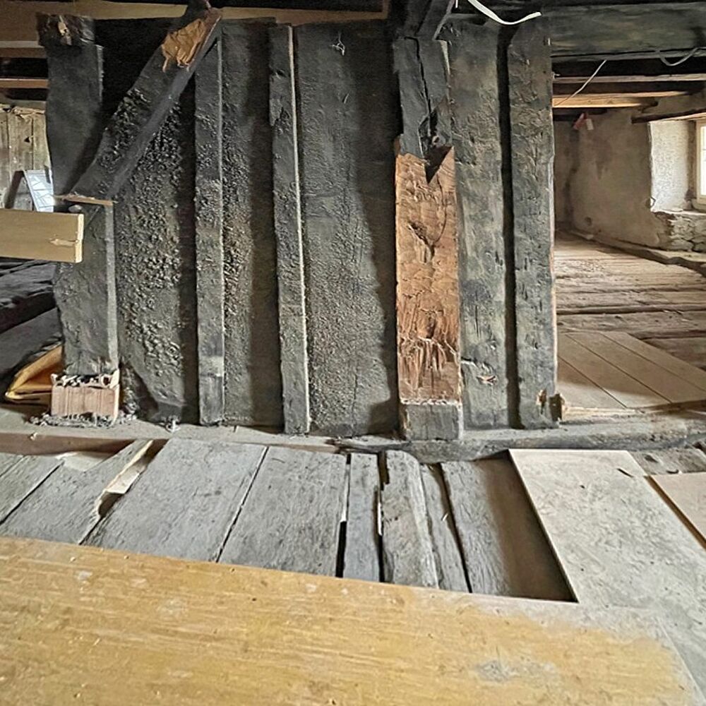 Bei der historischen Konstruktion des Tuggener Steinhauses handelt es sich um einen von Mauern ummantelten Holzständerbau, deren Instandsetzung viel Geschick und Erfahrung erforderte. Das Mauerwerk musste fachgerecht instandgesetzt und die Holzkonstruktion langfristig stabilisiert, ergänzt und teilw...