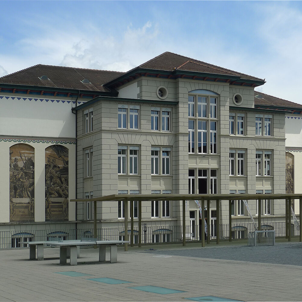 Das Schulhaus Angelrain wurde 1902/03 nach Plänen des Lenzburger Baumeisters Theodor Bertschinger junior errichtet. Der künstlerische Schmuck des palastartigen Baus im Stil des Historismus stammt von zwei Lenzburger Künstlern, mit denen Bertschinger auch andernorts zusammenarbeitete: Kunstmaler Wern...