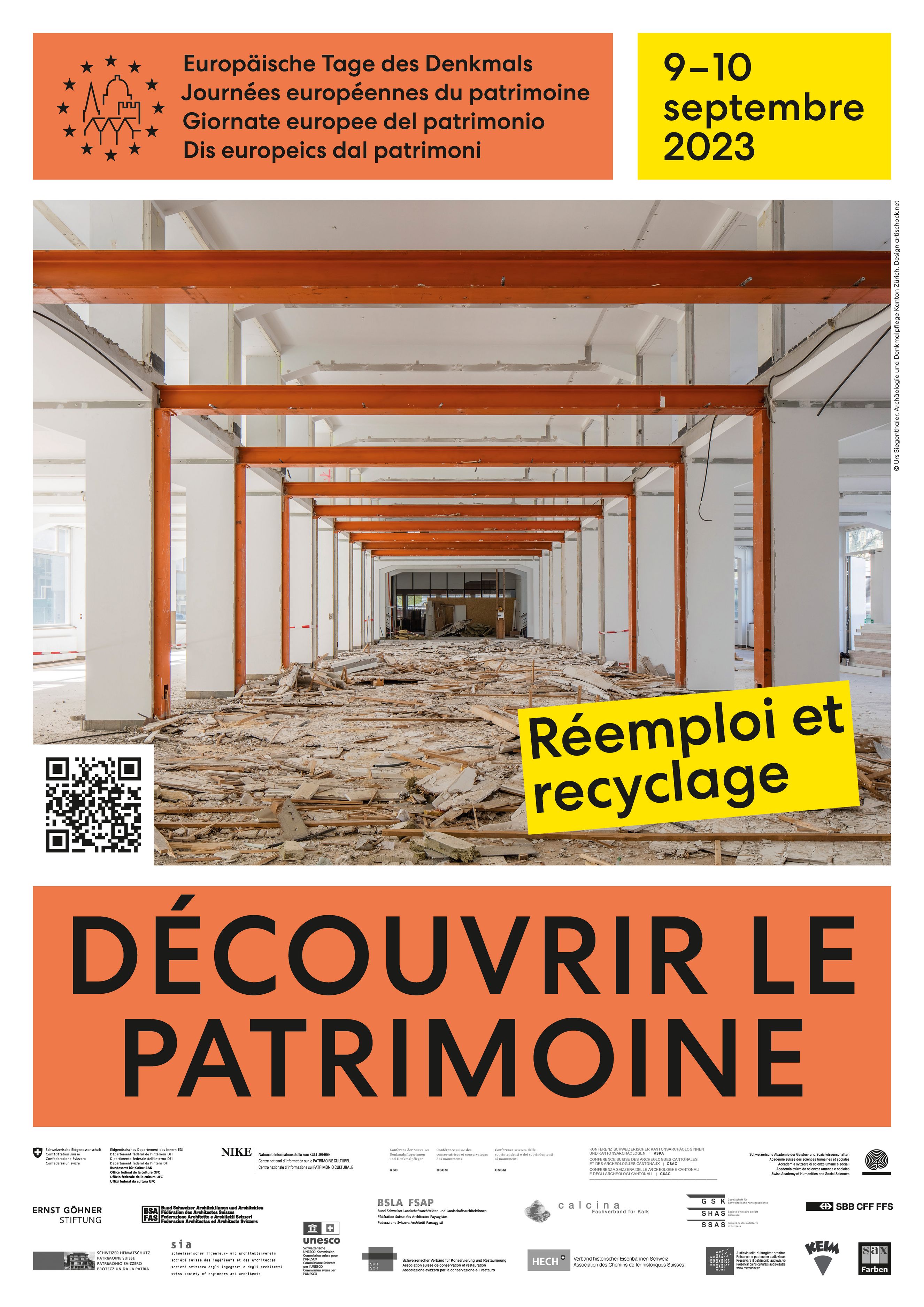 « Réemploi et recyclage », c’est le thème des 30e Journées européennes du patrimoine en Suisse. Les Journées européennes du patrimoine invitent à découvrir en exclusivité des lieux historiques. Les 9 et 10 septembre 2023, elles montreront, à travers quelque 400 manifestations, comment il est possible de préserver l’ancienne splendeur du patrimoine culturel tout en préservant nos ressources.